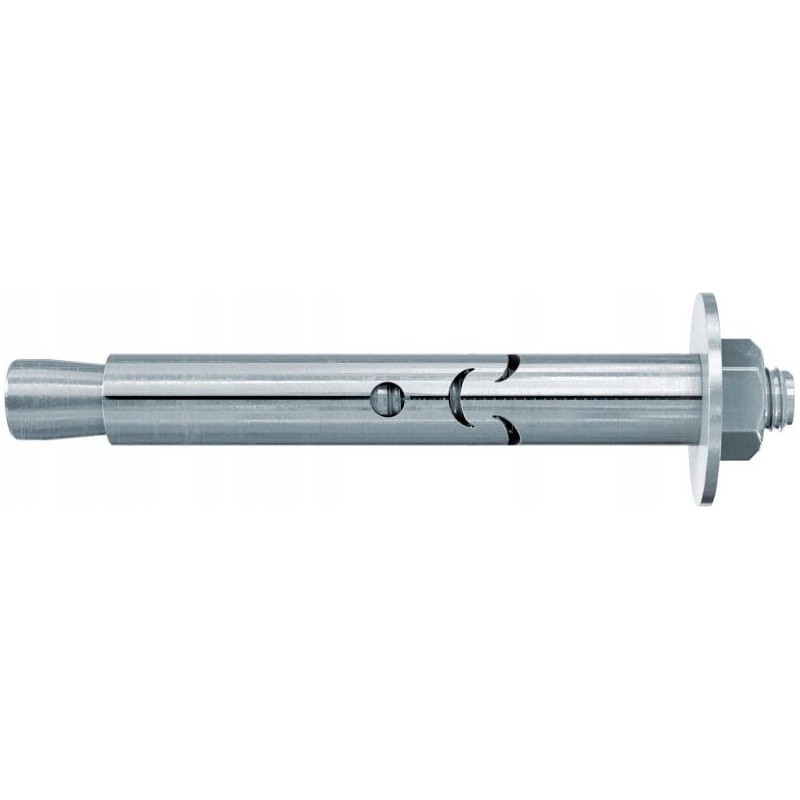 Kotwa tulejowa fischer FSA-B ze stali cynkowanej z nakrętką i podkładką przeznaczona jest do mocowań konstrukcyjnych i jest wykonana ze stali ocynkowanej. Kotwa FSA-B przyspiesza montaż przelotowy. Podczas dokręcania, stożek jest wciągany do tulei i rozpiera ją do ścianki otworu. Zagłębienia działają jako strefa zgniatania do przejmowania poślizgu podczas dokręcania. W ten sposób element mocowany jest dociągany do materiału podłoża. Kotwa tulejowa fischer FSA-B idealnie sprawdza się w mocowaniu elementów o niższych wymaganiach w zakresie bezpieczeństwa, np. drabin, bram i tymczasowych mocowań w betonie niezarysowanym.