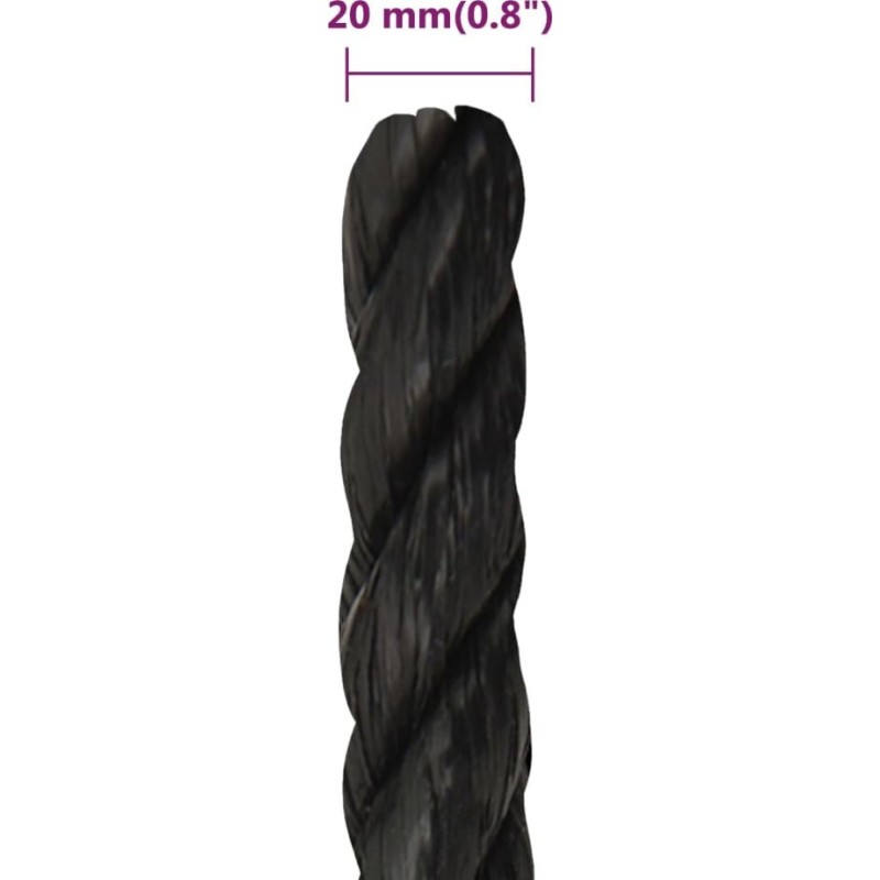 vidaXL vidaXL Linka robocza, czarna, 20 mm, 50 m, polipropylen