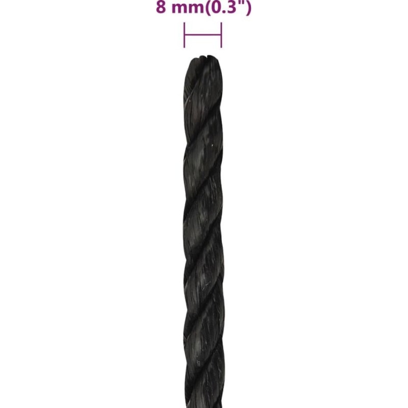 vidaXL vidaXL Linka robocza, czarna, 8 mm, 250 m, polipropylen