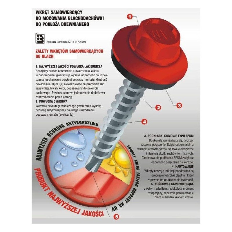 Wkręt samowiercący do mocowania blachodachówki w podłożu drewnianym ,