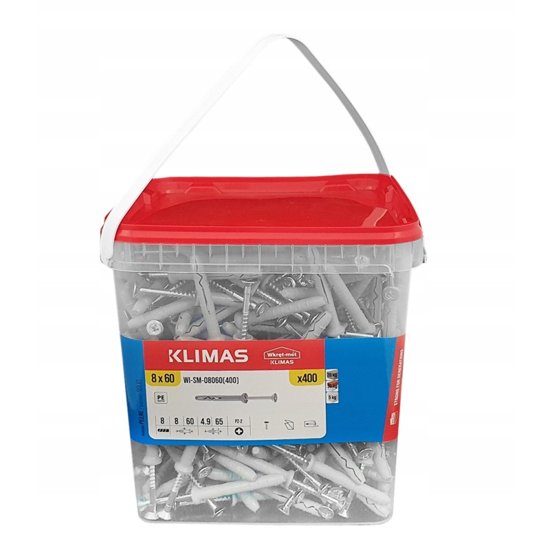 Kołki rozporowe mają średnicę 8 mm oraz długość 60 mm, co czyni je idealnym rozwiązaniem do wielu zastosowań. Średnica wkręta wynosi 4,9 mm, a jego długość to 65 mm, co zapewnia stabilne mocowanie w różnych materiałach.