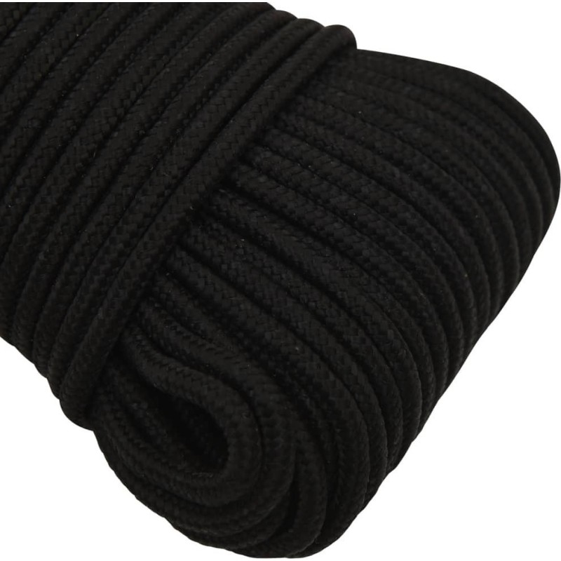 vidaXL vidaXL Linka robocza, czarna, 5 mm, 100 m, poliester