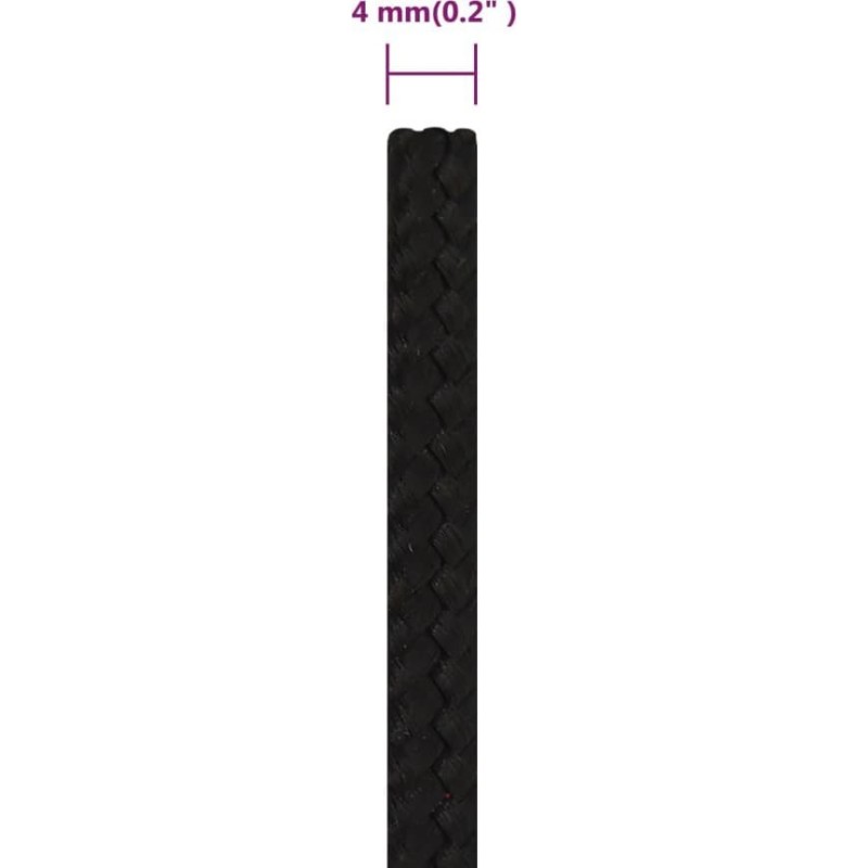 vidaXL vidaXL LinKa robocza, czarna, 4 mm, 100 m, poliester