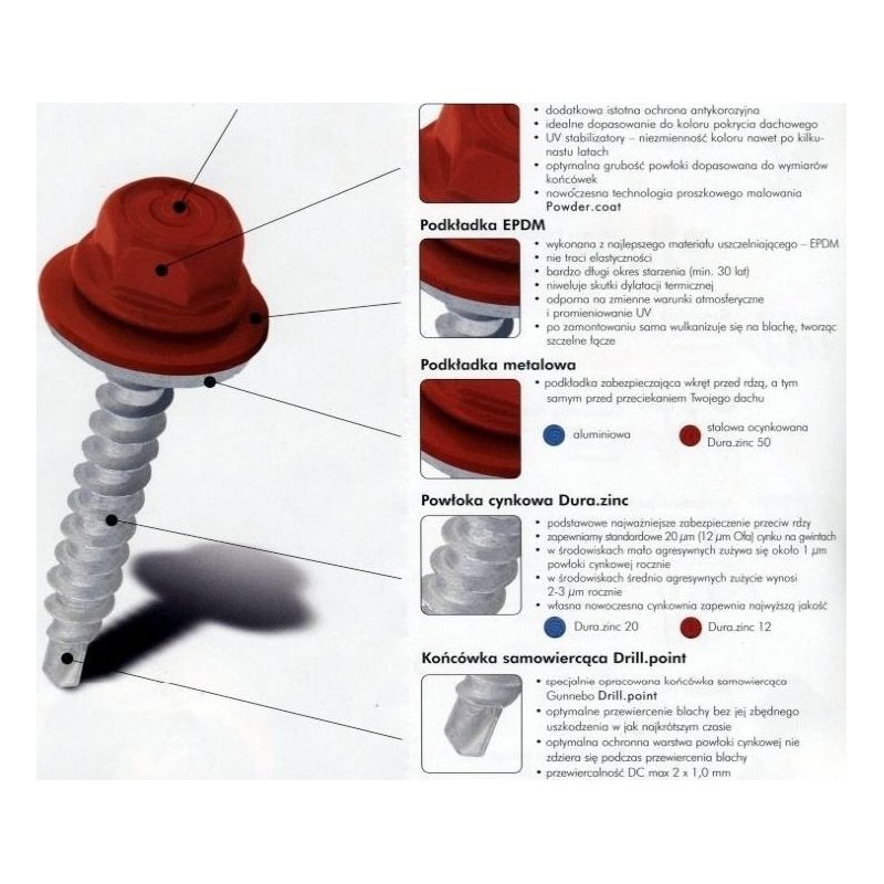 ocynkowany elektrolitycznie, ze zredukownym punktem wiercącym,