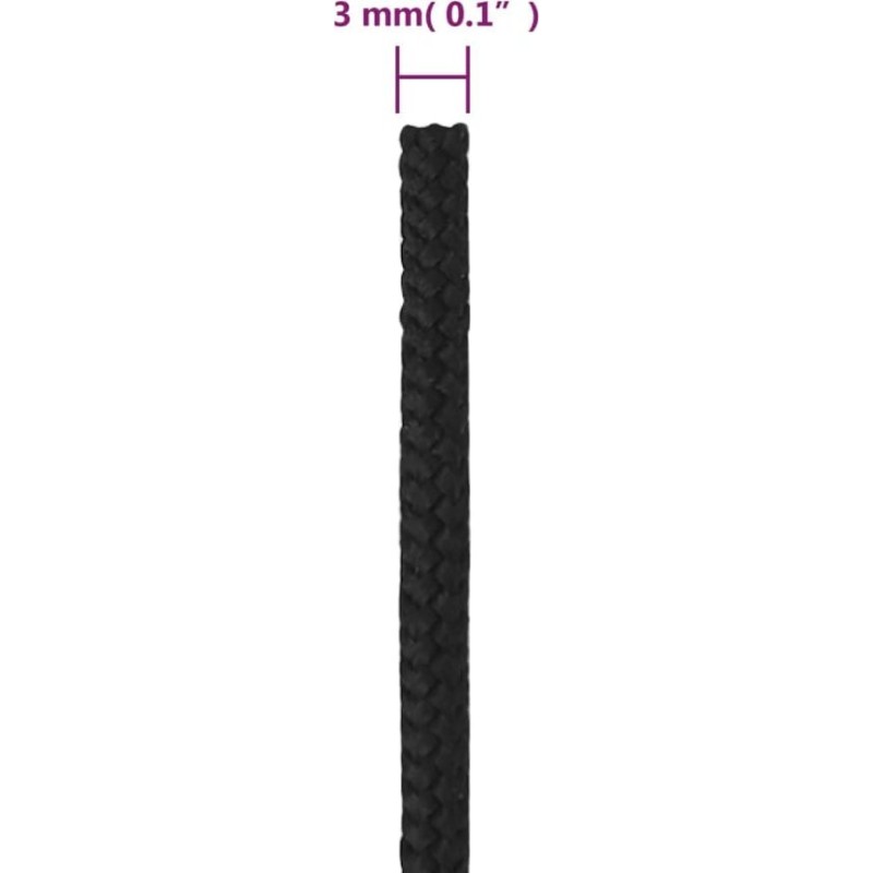 vidaXL vidaXL Linka żeglarska, czarna jednolita, 3 mm, 250 m, polipropylen