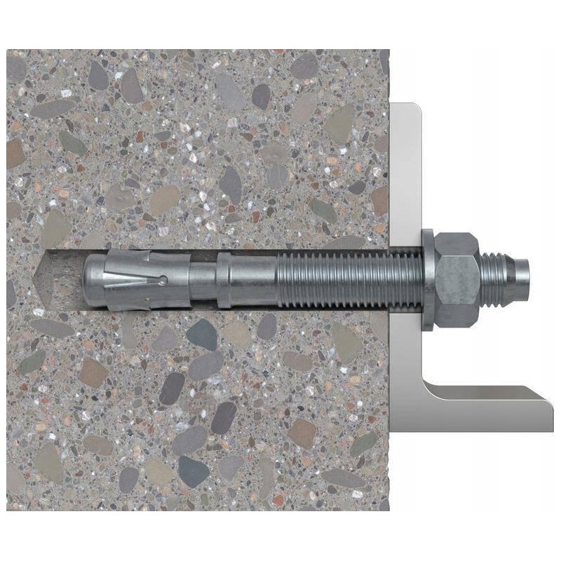 Fischer KOTWA SWORZNIOWA FBN II 8/30 1 szt Efektywne kosztowo mocowanie wykonane ze stali ocynkowanej ogniowo do użytku w betonie niezarysowanym. Główne cechy Dzięki uzyskaniu dokumentu europejskiej oceny technicznej (ETA), wersja stalowa ocynkowana ogniowo jest objęta gwarancją dla zastosowań zewnętrznych z wysoką trwałością, w zależności od środowiska i warunków korozyjnych. FBN II osiąga maksymalną nośność przy standardowej głębokości kotwienia. To oznacza: mniej punktów mocowania i mniejsze płytki kotwiące. W przypadku stosowania zmniejszonej głębokości kotwienia, głębokość otworu wierconego jest również mniejsza, co upraszcza montaż. Tolerancje dla elementów bilansowane są przez długi gwint. Dodatkowo, kotwa FBN II może być również stosowana w montażu z odstępem. Zwiększa to jej elastyczność. Łatwy montaż dzięki stosowaniu małej ilości obrotów gwintu i minimalnemu poślizgowi. Opis produktu Kotwa śrubowa fischer FBN II to stalowa kotwa do efektywnych kosztowo mocowań w betonie niezarysowanym. Dzięki zastosowaniu długiego gwintu i dwóch głębokości kotwienia, kotwa śrubowa fischer FBN II może zapewnić szczególną elastyczność. Kotwa śrubowa jest również przeznaczona do montażu z odstępem, montażu wstępnego i przelotowego. Kotwa śrubowa wykonana ze stali cynkowanej ogniowo jest przeznaczona do mocowania poręczy, barierek i wsporników. Zalety Standardowa głębokość kotwienia zapewnia maksymalną nośność. To oznacza możliwość stosowania mniejszej ilości punktów mocowania i mniejszych płyt kotwiących. Zredukowana głębokość kotwienia pozwala na stosowanie płytszych otworów wierconych. Ogranicza to do minimum czas potrzebny na montaż, przy zwiększeniu elastyczności. Pierwsza kotwa śrubowa o dużej trwałości uwzględnia zastosowania w warunkach mokrych i na zewnątrz. Długi gwint kompensuje tolerancje elementów i umożliwia montaż z odstępem, zwiększając elastyczność systemu. Mniejsza liczba uderzeń młotka i minimalny poślizg zapewniają zauważalne uproszczenie montażu. Trzpień wprowadzający chroni gwintowany wkręt przed uszkodzeniami i zapewnia szybszy montaż i demontaż mocowania. Zastosowania Konstrukcje stalowe Balustrady Wsporniki Drabiny Trasy kablowe Maszyny Klatki schodowe Bramy Fasady Materiały budowlane Aprobata do: Beton C20/25 do C50/60, niezarysowany Nadaje się także do: Beton C12/15 Kamień naturalny o zwięzłej strukturze Zezwolenie ETA-07/0211 ETA-18/0101 DoP 0192 DoP No. 0015 DoP No. 0 Funkcjonowanie Kotwa FBN II jest przeznaczona do montażu wstępnego i montażu przelotowego; a w niektórych warunkach również montażu z odstępem. Przed rozpoczęciem montażu, umieścić nakrętkę sześciokątną w optymalnym położeniu (wprowadzany trzpień wystaje ok. 3 mm poza nakrętkę sześciokątną). Po przyłożeniu momentu obrotowego, śruba stożkowa jest wciągana do klipsu rozporowego i rozszerza się do ścianki otworu. Pogrubienie łba ułatwia kontrolowanie kotwienia. W przypadku montażu seryjnego, zalecamy stosowanie osadzaka FABS do kotew śrubowych.