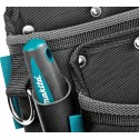 Makita E-15198. Materiały: Skóra, Poliester, Kolor produktu: Czarny, Szary, Morski. Szerokość produktu: 145 mm, Głębokość produktu: 260 mm, Wysokość produktu: 270 mm