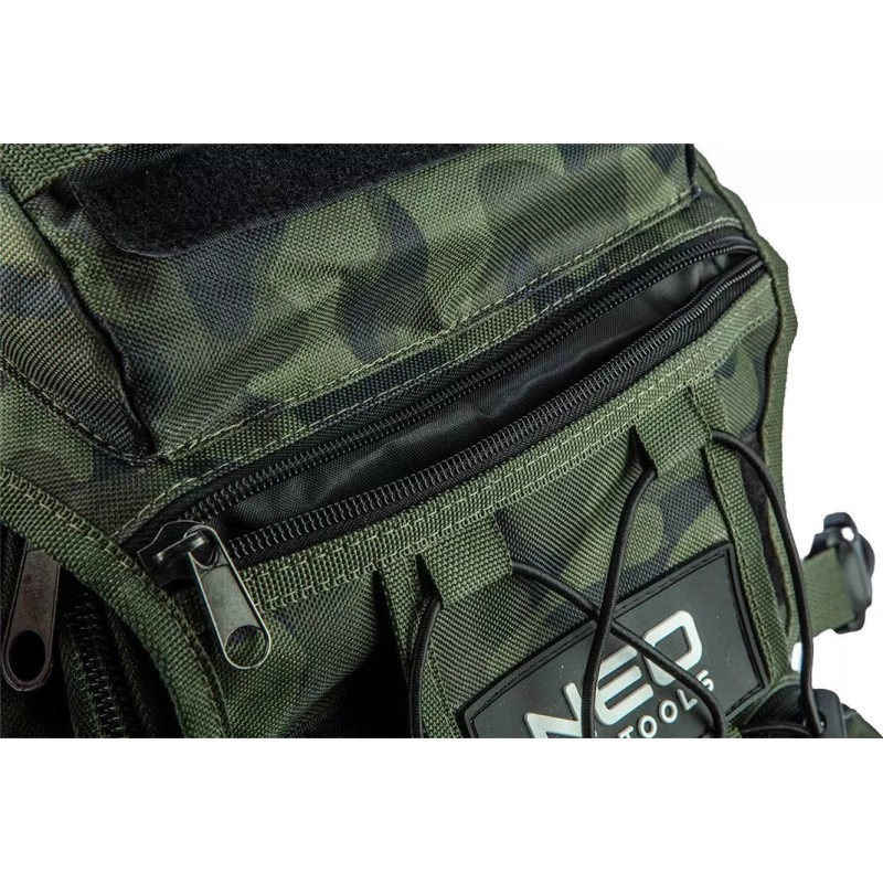 Plecak został wykonany z poliestru 600D. Jest to lekka tkanina, która charakteryzuje się wytrzymałością i trwałością. Dodatkowo jest ona odporna na przetarcia, rozdarcia oraz inne działania mechaniczne.