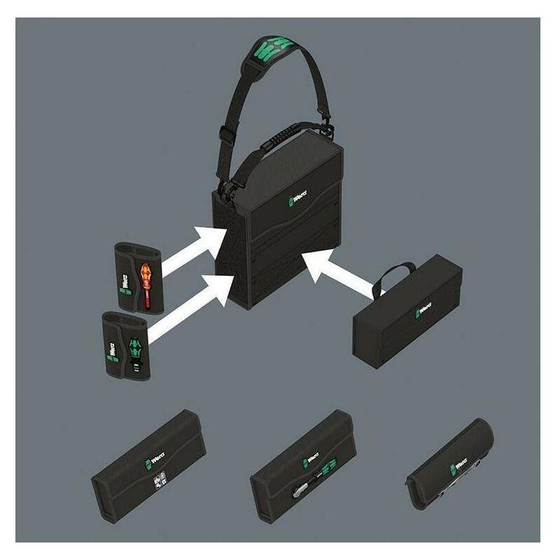Wysoka torba narzędziowa do przechowywania i transportu długich narzędzi i części zamiennych. Wysoka odporność na przecięcie i przebicie. Nadaje się do dokowania w systemie Wera 2go.