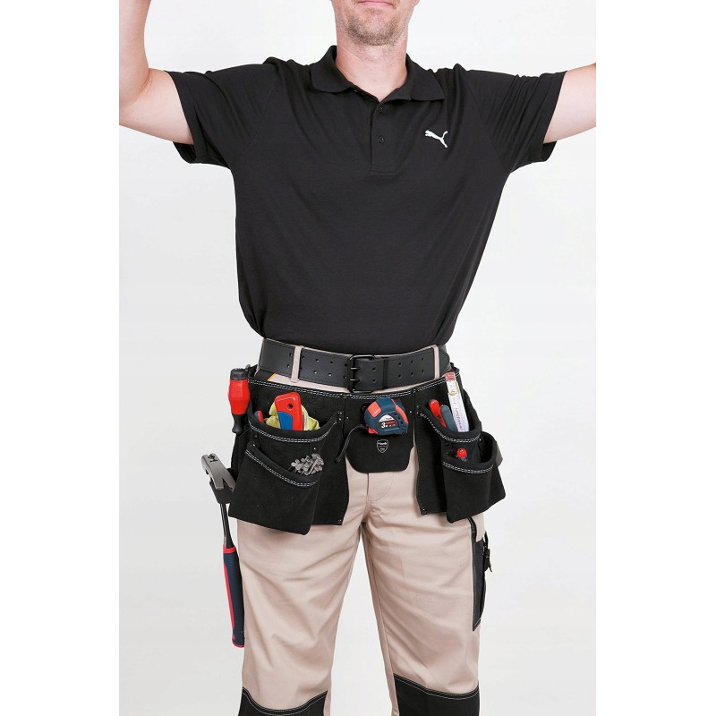 - Torba narzędziowa o najwyższej jakości wykonania. Podwójna seria szwów, z srebrnym nitkami, zakończenia szwów są dodatkowo wykończone nitami, co oznacza, że są one chronione przed rozdarciami.