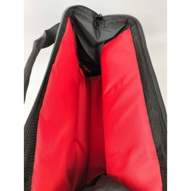 - Wygodny transport – Wyściełany pas rękojeściowy i uchwyt do przenoszenia zapewniają wygodny transport torby z narzędziami.
