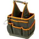 Przed wyjściem do pracy zapakuj wszystkie potrzebne Ci urządzenia do tej torby na narzędzia elektryczne firmy BAHCO! Dzięki jej otwieranej konstrukcji możesz mieć łatwy dostęp do narzędzi znajdujących się w środku. Dzięki wielu kieszeniom, gumkom i przegrodom, ta poręczna torba na narzędzia elektryczne jest idealna do uporządkowania Twoich kombinerek, kluczy, śrubokrętów itp. W środku znajdują się schowki na Twój telefon, wizytówki i taśmę mierniczą. Dzięki miękkiemu uchwytowi i wyściełanemu paskowi na ramię możesz z łatwością nosić narzędzia ze sobą. Uwaga: Narzędzia nie są częścią zestawu.