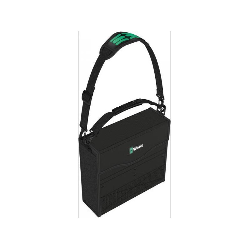Kompaktowa budowa oraz rzepy sprawiają, że neseser tekstylny Wera 2go 2XL z bardzo głębokimi przegródkami jest idealnym rozwiązaniem zapewniającym komfort podczas transportu narzędzi i umożliwiającym dostosowanie do indywidualnych potrzeb. Umieszczone wewnątrz i na zewnątrz rzepy gwarantują efektywne wykorzystanie przestrzeni. Dzięki temu niewiarygodnie dużo narzędzi mieści się w neseserze oraz w etui i torbach, które można zamocować na zewnątrz. Wera 2go 2 to gwarancja lekkiego bagażu, ponieważ w neseserze znajdują się tylko niezbędne narzędzia. Wytrzymały i odporny na odkształcenia materiał zabezpiecza przewożone narzędzia przed uszkodzeniem i wilgocią oraz zwiększa trwałość nesesera. Pasek na ramię z nakładką i regulowaną szerokością oraz fakt, że w trakcie przemieszczania się neseser zawsze znajduje się blisko ciała, zwiększają komfort, pozostawiając wolne ręce podczas transportu. Neseser zawiera 1 pojemnik tekstylny Wera 2go 4 do wkrętaków i innych narzędzi z indywidualnie regulowaną przegródką z rzepem. W neseserze z łatwością mieszczą się 4 takie pojemniki.