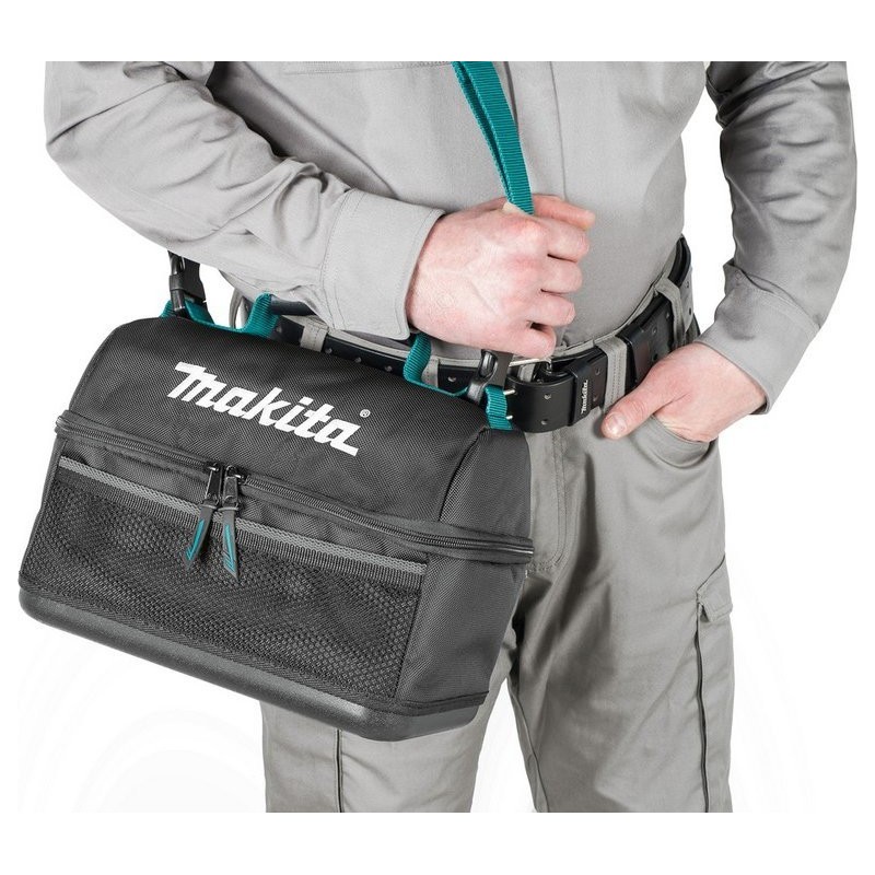 Torba na lunch z paskiem jest wyściełana od wewnątrz folią izolacyjną, która jest łatwa do czyszczenia i dłużej utrzymuje ciepło lub zimno żywności. Posiada dwukierunkowy zamek błyskawiczny do szerokiego otwierania torby i ochroną przed kurzem. Praktyczny uchwyt oraz pasek służą do jej przenoszenia. Z dodatkowym wzmocnionym i wodoodpornym spodem.