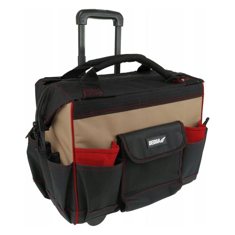 - 5 kieszeni zewnętrzych zapinanych na rzep, 1 na zamek, 5 kieszeni wewnętrznych i liczne paski przytrzymujące narzędzia
