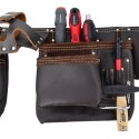 - Wyposażony w 11 multifunkcyjnych kieszeni w różnych rozmiarach do przechowywania narzędzi i akcesoriów, w tym 1 kieszeń na na taśmę mierniczą oraz 2 metalowe uchwyty na młotek lub siekierę.