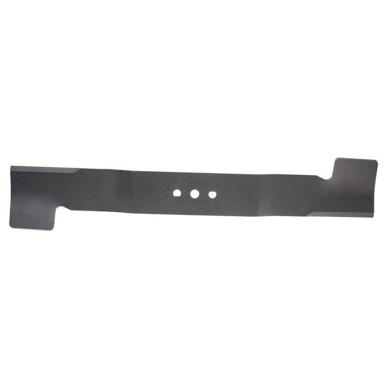 Długość noża wynosi 506 mm, a odległość otworów montażowych to 48 mm (mierzone od centrum do centrum). Wymiary otworów montażowych to 9 mm x 10,5 mm, a średnica centralna wynosi 11,5 mm. Te parametry zapewniają łatwy montaż i dopasowanie do różnych modeli kosiarki.
