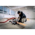 Urządzenie jest wyposażone w zintegrowane gniazdo ssące, które skutecznie odsysa wióry podczas pracy, co przyczynia się do utrzymania porządku w miejscu pracy oraz poprawia widoczność linii cięcia.