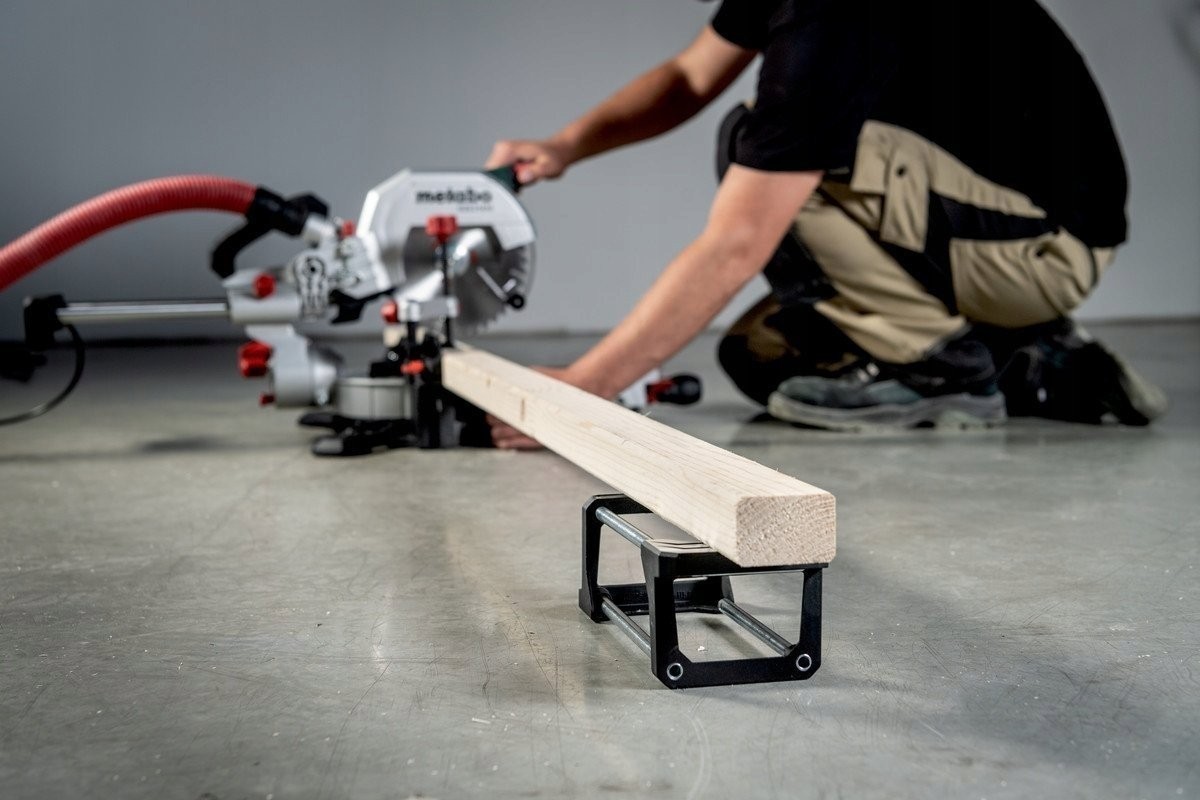 W zestawie z ukośnicą znajduje się ogranicznik długości oraz zacisk do mocowania obrabianego elementu, co zapewnia stabilność i bezpieczeństwo podczas cięcia. Dzięki tym dodatkom, praca z Metabo KGS 216 M staje się jeszcze bardziej komfortowa i bezpieczna.
