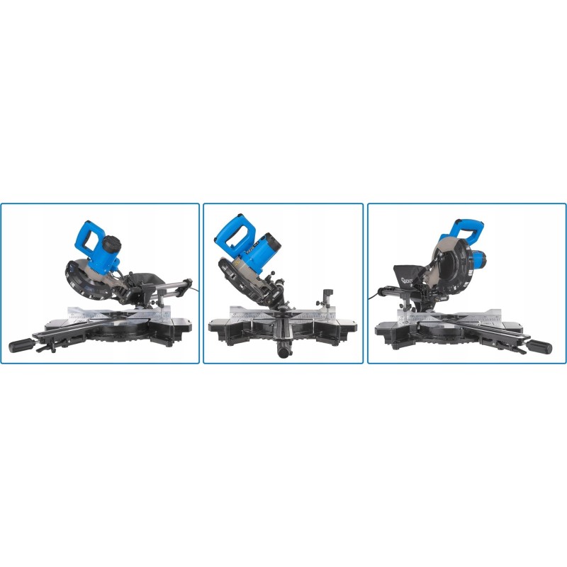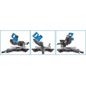 Dzięki zastosowaniu ruchomej podstawy wykonanej z wytrzymałego odlewanego ciśnieniowo aluminium, urządzenie pozwala na wykonywanie cięć ukośnych pod dowolnym kątem w zakresie -45°/ 0 / 45°. Dodatkowa regulacja kąta nachylenia tarczy tnącej daje możliwość cięcia materiału pod skosem 0°-45°.
