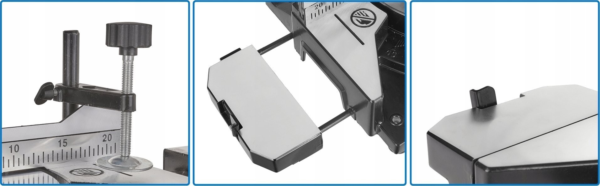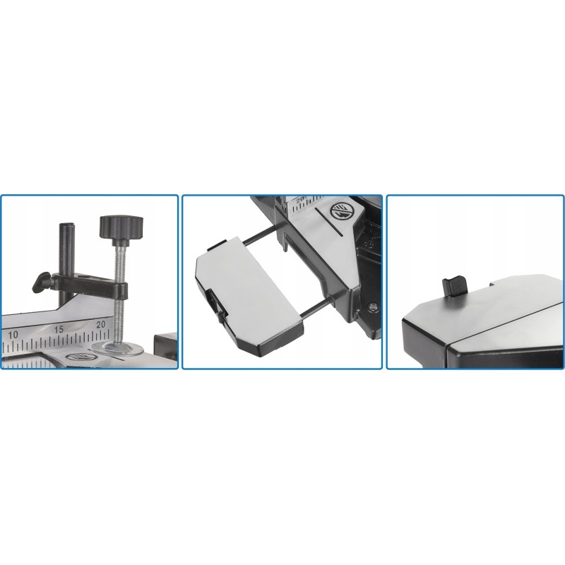 - Posiada zacisk umożliwiający pewne przytrzymanie ciętego materiału.