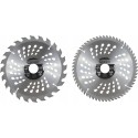 - W zestawie z deską piłową znajdują się dwie tarcze tnące o średnicy 210mm, wyposażone w 24 oraz 60 zębów tnący z węglika spiekanego
