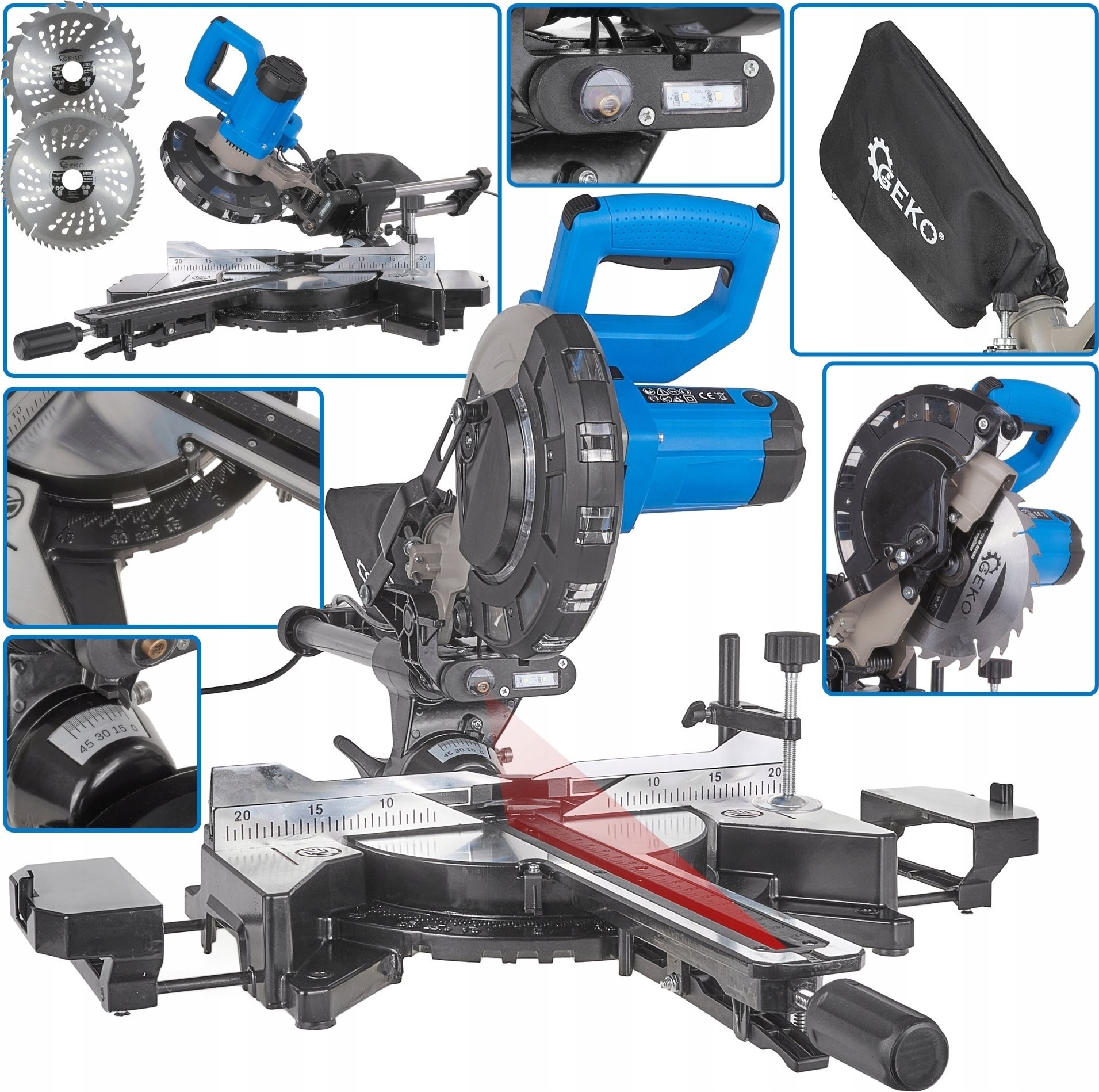 GEKO - DESKA PIŁOWA Z RUCHOMYMI NASTAWAMI DO CIĘCIA DREWNA 1700W 210mm - LASER