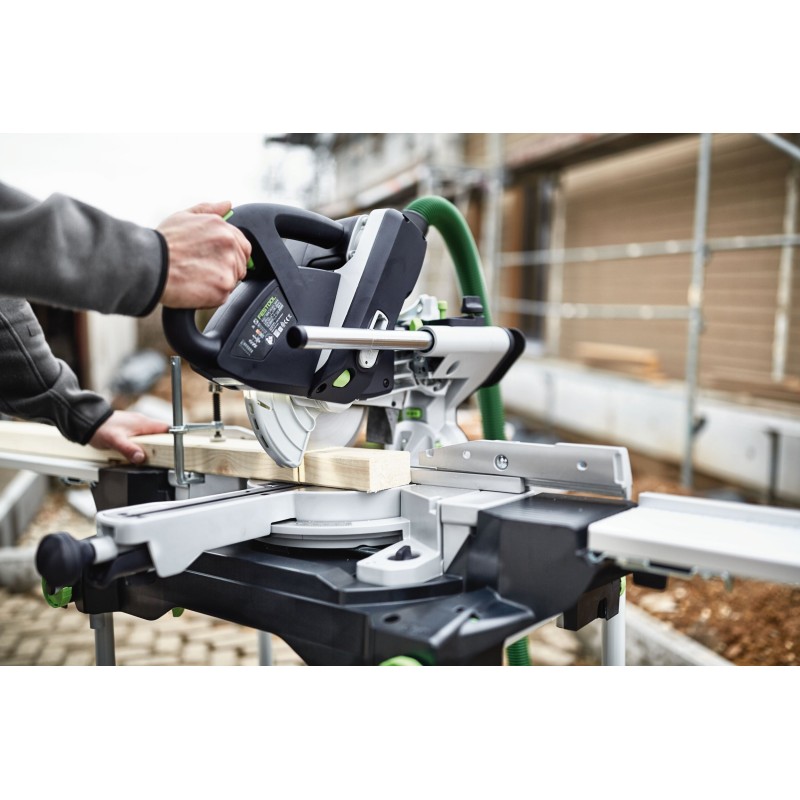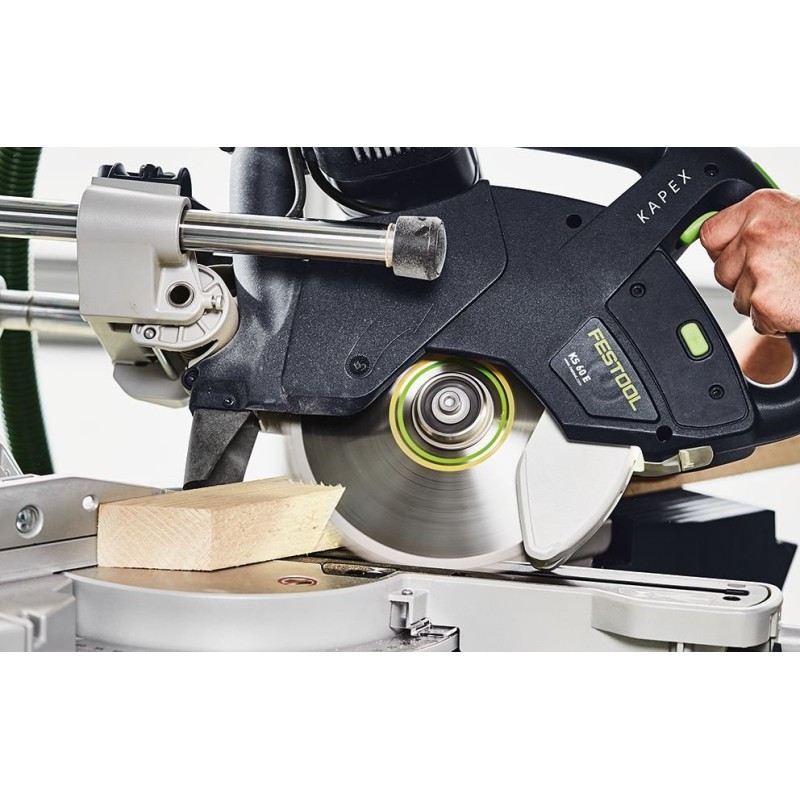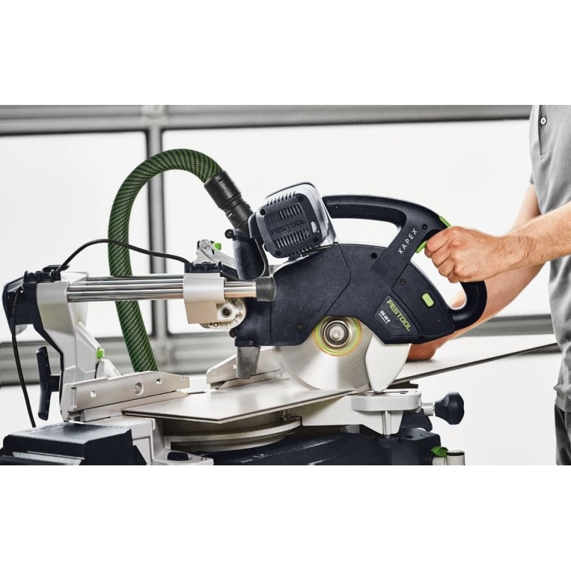Do tego dalsze przydatne detale, jak światło LED wyznaczające miejsce cięcia, wysuwany element rozszerzający stół, dodatkowa funkcja wycinania wpustów czy kątownik nastawny sprawiają, że KAPEX KS 60 to idealne połączenie mobilności, różnorodności zastosowań i najlepszych rezultatów. Kątownik nastawny do ustawienia kątów wewnętrznych i zewnętrznych. Obustronny kąt nachylenia do 47°/46° i obustronny kąt skosu do 60°. Jeszcze bardziej mobilne: podstawka UG-KAPEX – mocowanie i przenoszenie w jednym. Ograniczenie głębokości do szybkiego wycinania wpustów. Dla czystego powietrza i zdrowego środowiska pracy: odkurzacz mobilny Festool zasysa pył w miejscu jego powstawania. Zawsze odpowiednie do materiału: tarcze pilarskie Festool są idealnie dopasowane do KAPEX KS 60 i materiałów