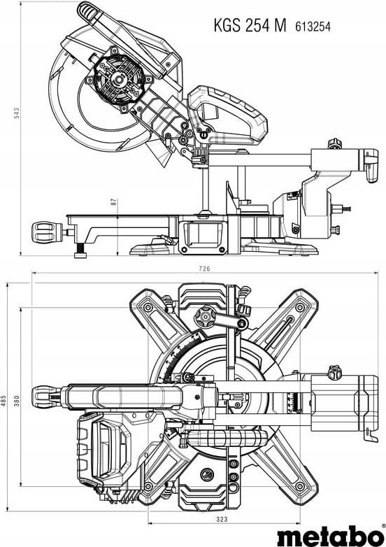 Specyfikacja techniczna ukośnicy Metabo KGS 254 M