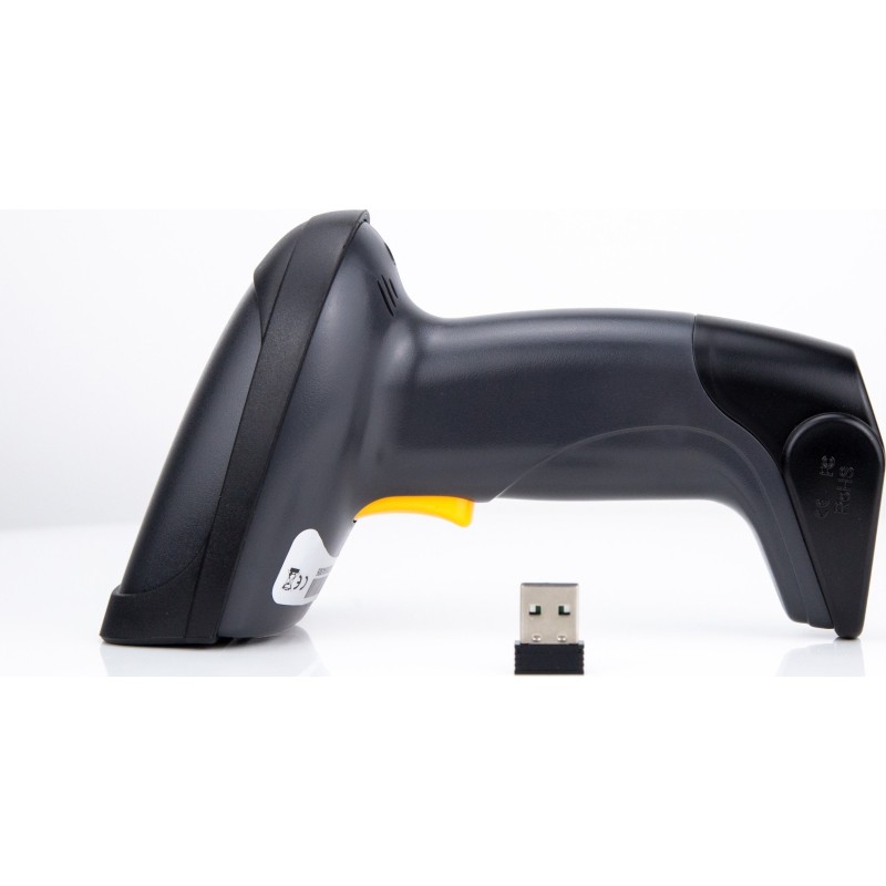Equip 351023. Model: Ręczny czytnik kodów kreskowych, Typ skanera: 1D, Typ przetwornika obrazu: LED. Technologia łączności: Bezprzewodowy, Standardowe interfejsy: RF Wireless, Częstotliwość (MHz): 2400 MHz. Kolor produktu: Czarny, Materiał obudowy: Kopolimer akrylonitrylo-butadieno-styrenowy (ABS), Stopień ochrony IP: IP54. Rodzaj zasilania: Bateria, Technologia baterii: Litowo-jonowa (Li-Ion), Rodzaj baterii: Wbudowana bateria. Waga produktu: 190 g, Szerokość produktu: 72 mm, Głębokość produktu: 101 mm
