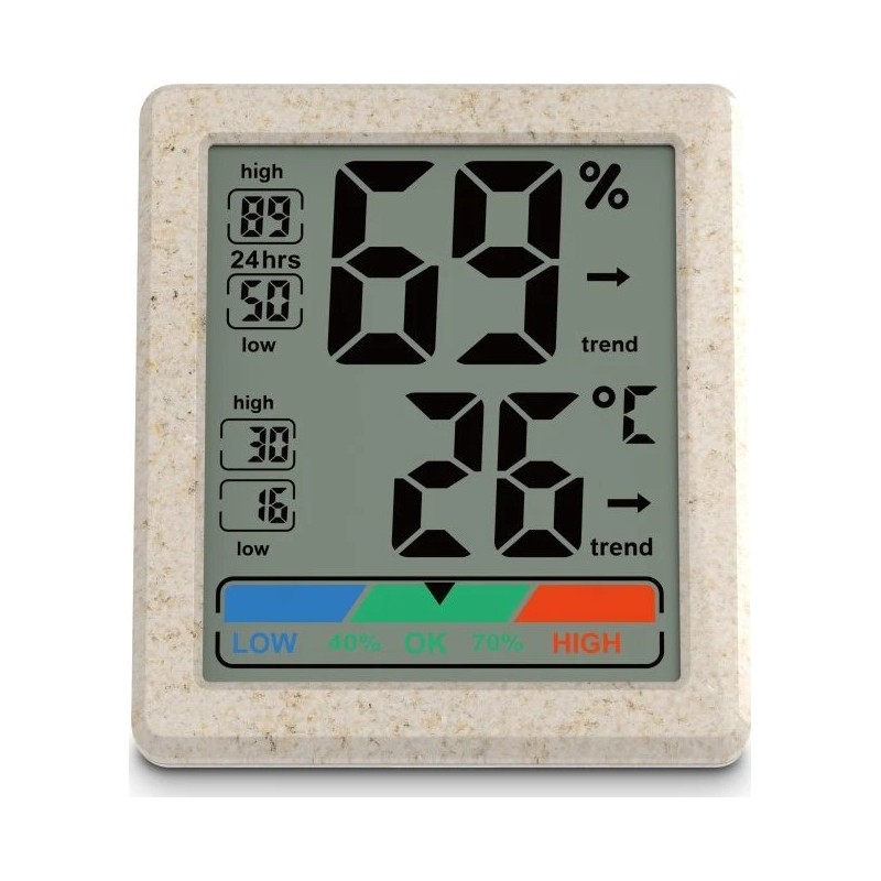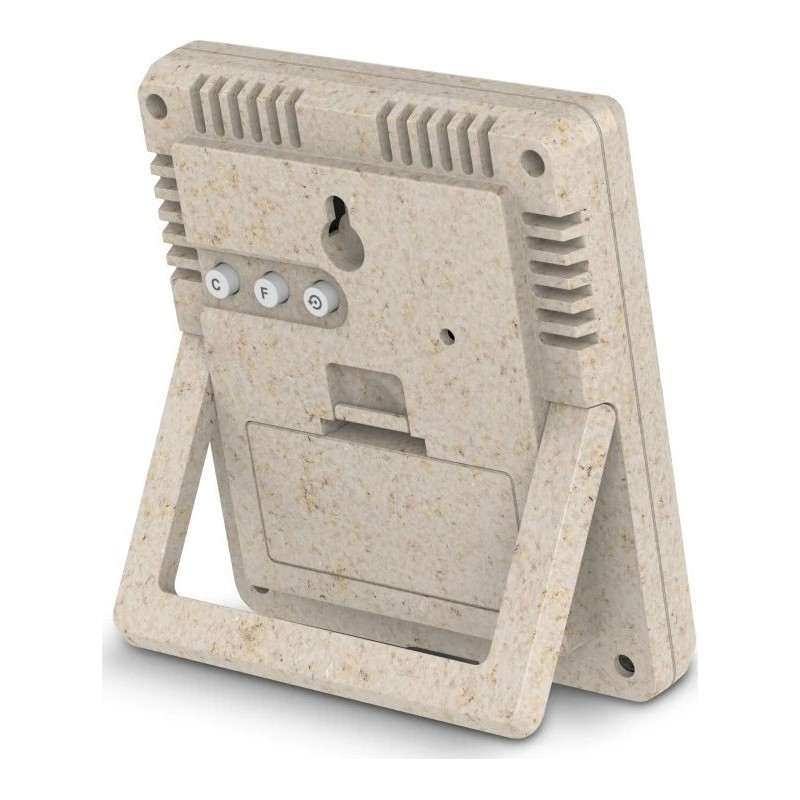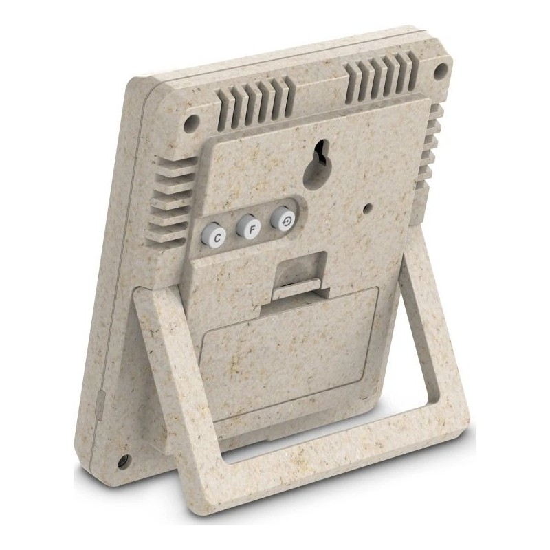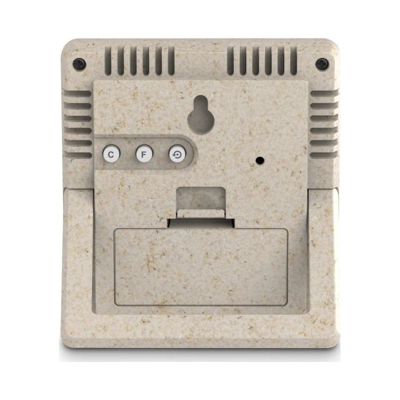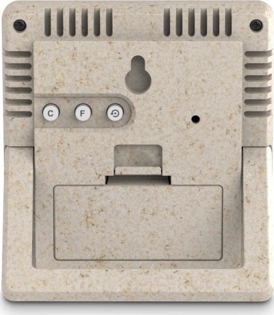 Hama Ponza. Przeznaczenie: Wewnętrzna, Typ przetwornika obrazu: Czujnik temperatury i wilgotności, Model: Wolnostojący. Rodzaj baterii: AAA. Szerokość produktu: 85 mm, Głębokość produktu: 18 mm, Wysokość produktu: 95 mm. Certyfikat środowiskowy (zrównoważonego rozwoju): Forest Stewardship Council (FSC)