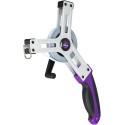 Taśma została zaprojektowana z myślą o komforcie użytkownika. Gumowany uchwyt zapewnia pewny chwyt, a przycisk z boku umożliwia łatwe zwijanie taśmy, co sprawia, że praca z nią jest szybka i wygodna.