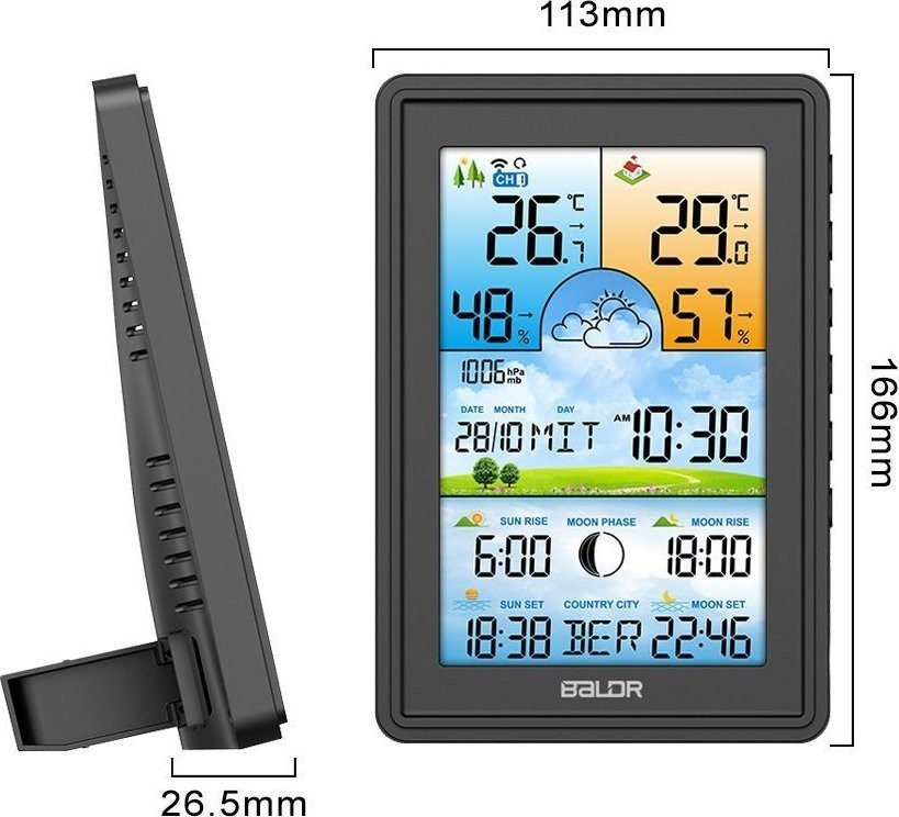 - Wymiary stacji pogodowej: 11x2,5x16,5 cm