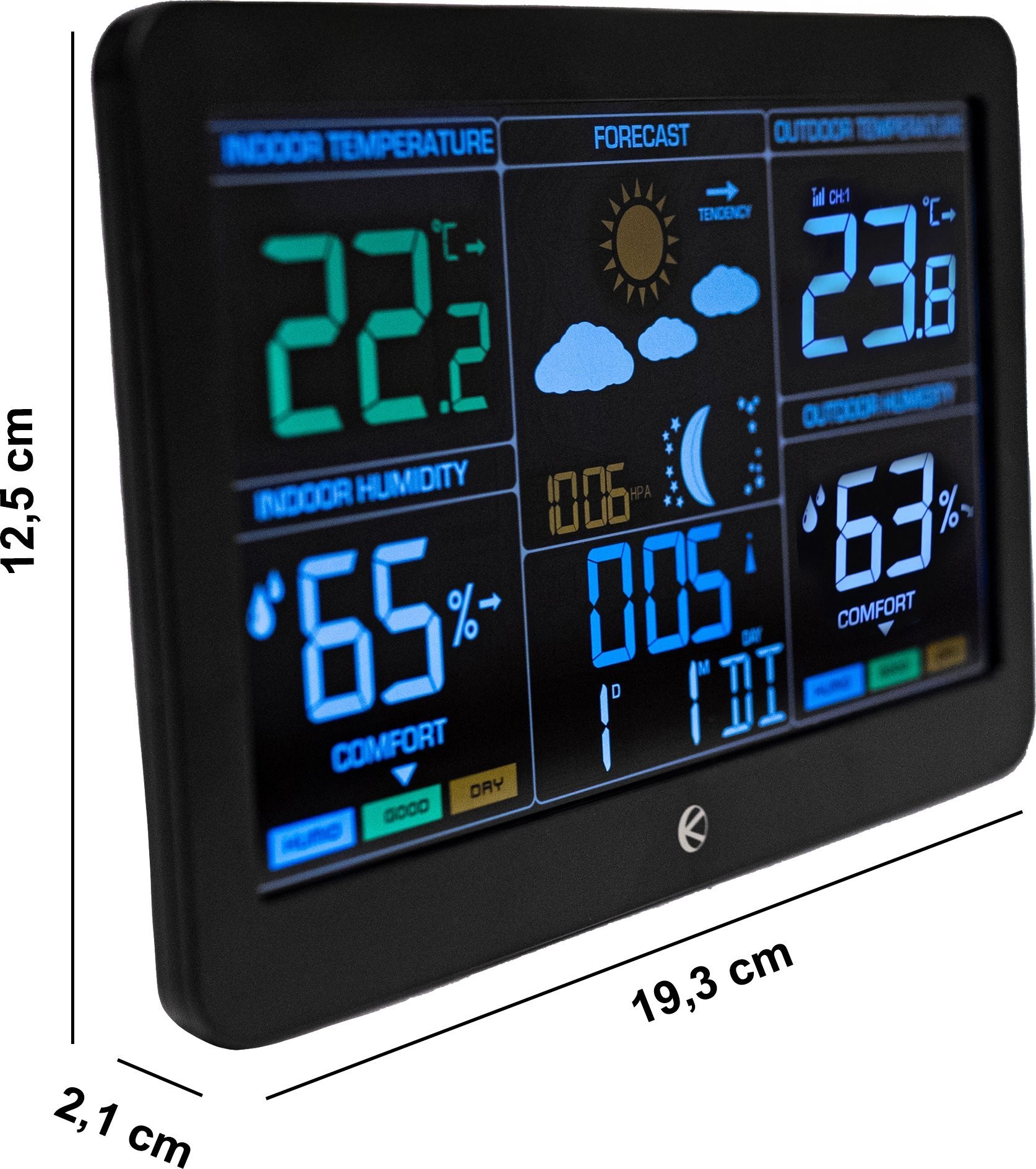 - Wymiary stacji pogodowej: 19,3x2,1x12,5 cm