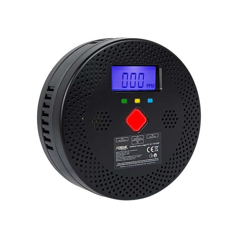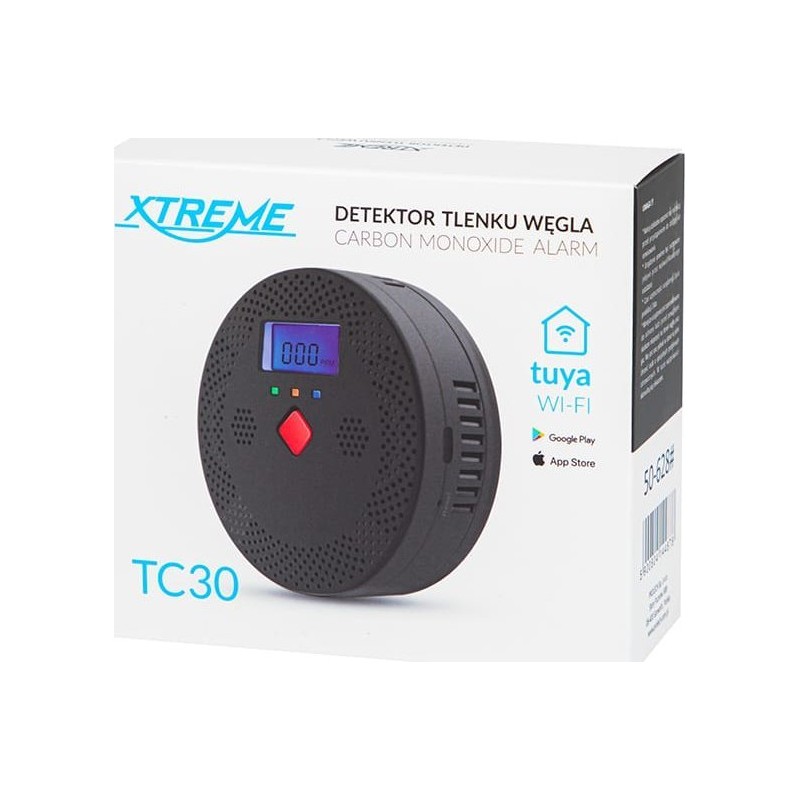 Detektor czujnika tlenku węgla XTREME z możliwością konfiguracji urządzenia za pomocą wbudowanego Wi-Fi oraz dedykowanej aplikacji TUYA SMART LIFE. W przypadku wykrycia czadu czujnik wydaje ostrzeżenia dźwiękowe oraz optyczne za pomocą czerwonej diody.
