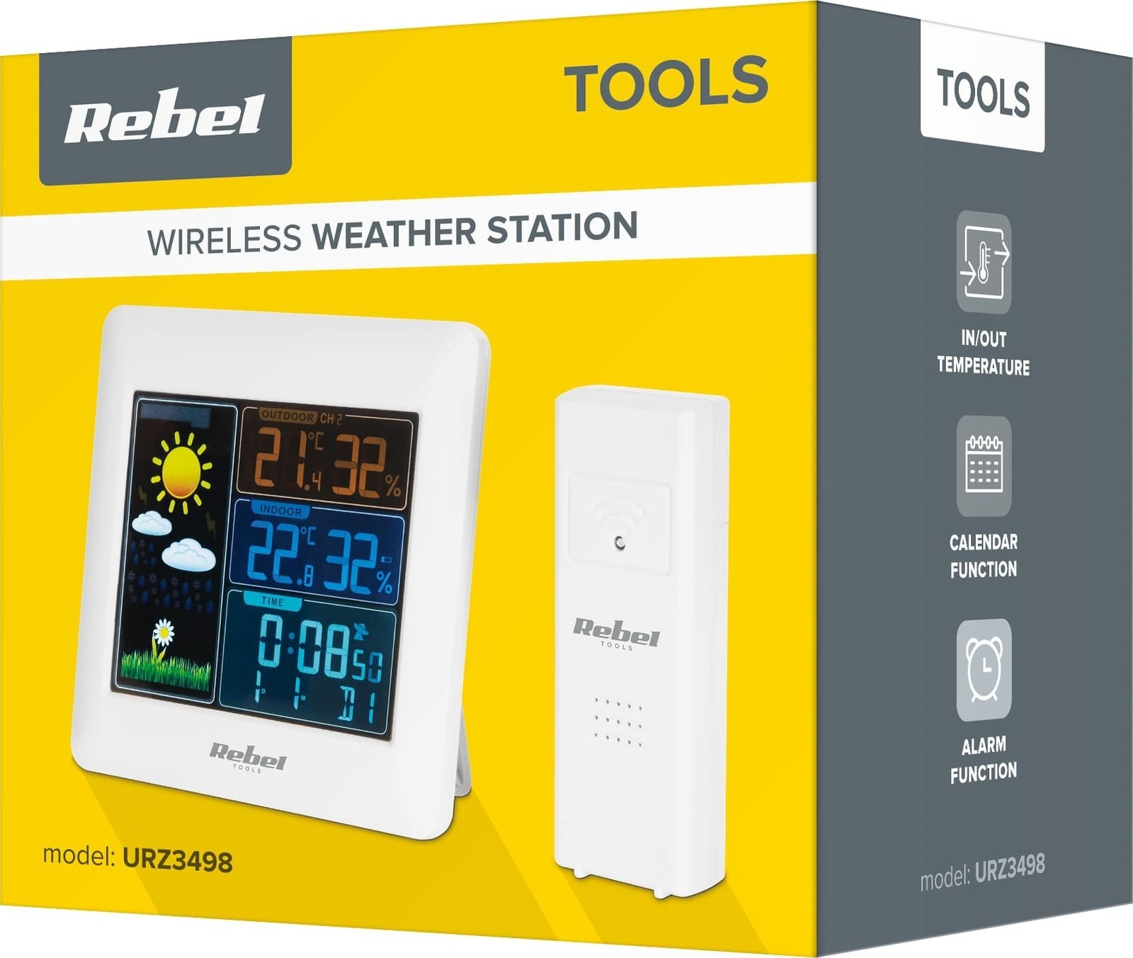 Rebel Bezprzewodowa stacja pogodowa z czujnkiem zewnetrznym ( kolorowy wyświetlacz)