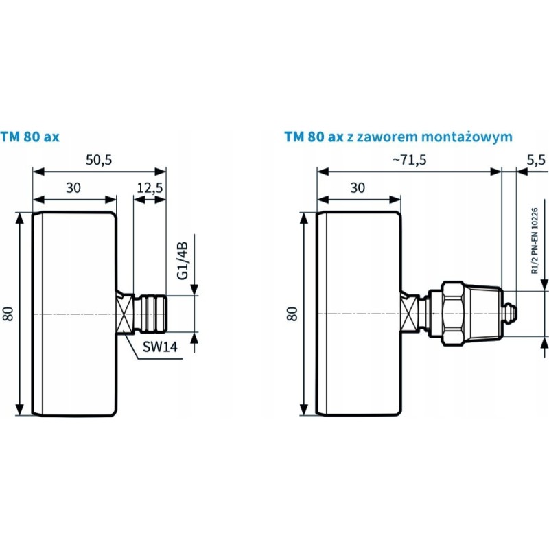 Termomanometry Afriso TH 80 składają się z rurowego, sprężynowego układu pomiarowego do pomiaru ciśnienia oraz zintegrowanego bimetalicznego układu pomiarowego do jednoczesnego pomiaru temperatury. Obydwa wskaźniki mogą zatem rejestrować i wyświetlać pomiary z tylko jednego punktu pomiarowego. Zawór samouszczelniający umożliwia łatwą wymianę urządzenia pomiarowego bez wyłączania instalacji.
