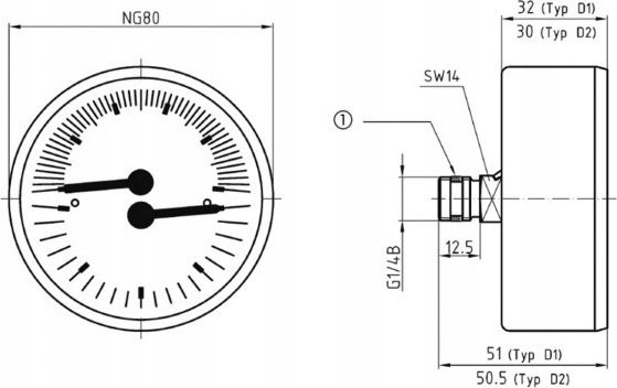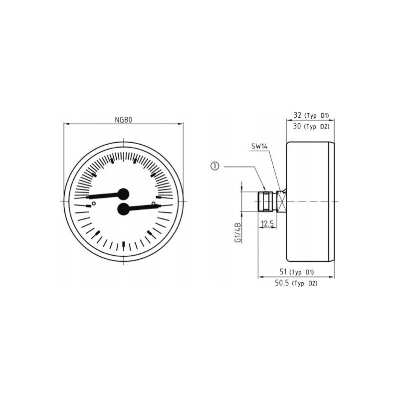 Termomanometr TM 80 fi80 mm 0÷10 bar 20÷120°C G1/4"