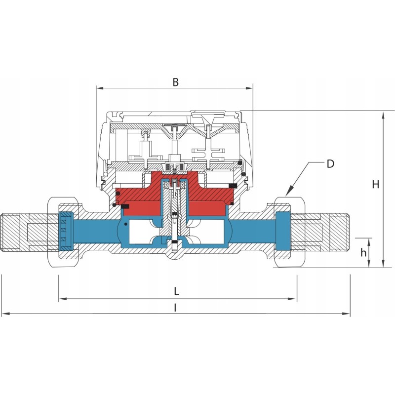 Wodomierz jednostrumieniowy, suchobieżny z interfejsem indukcyjnym, wyposażony w ośmiobębenkowe liczydło obracane o 360°. Urządzenie napędzane jest za pośrednictwem wzmocnionego, czteropolowego sprzęgła magnetycznego, które eliminuje jego zerwanie oraz poślizg. Dodatkowo zwiększa dokładność pomiaru wodomierza poprzez utrzymanie wirnika w hydromagnetycznym balansie.