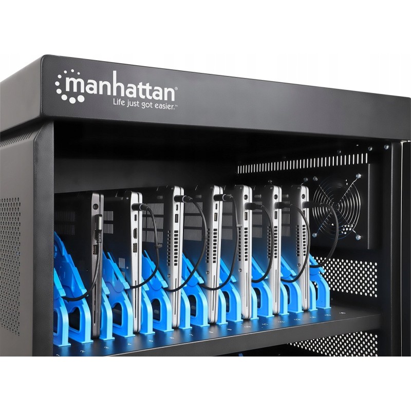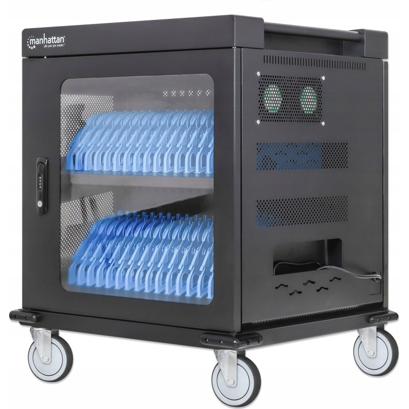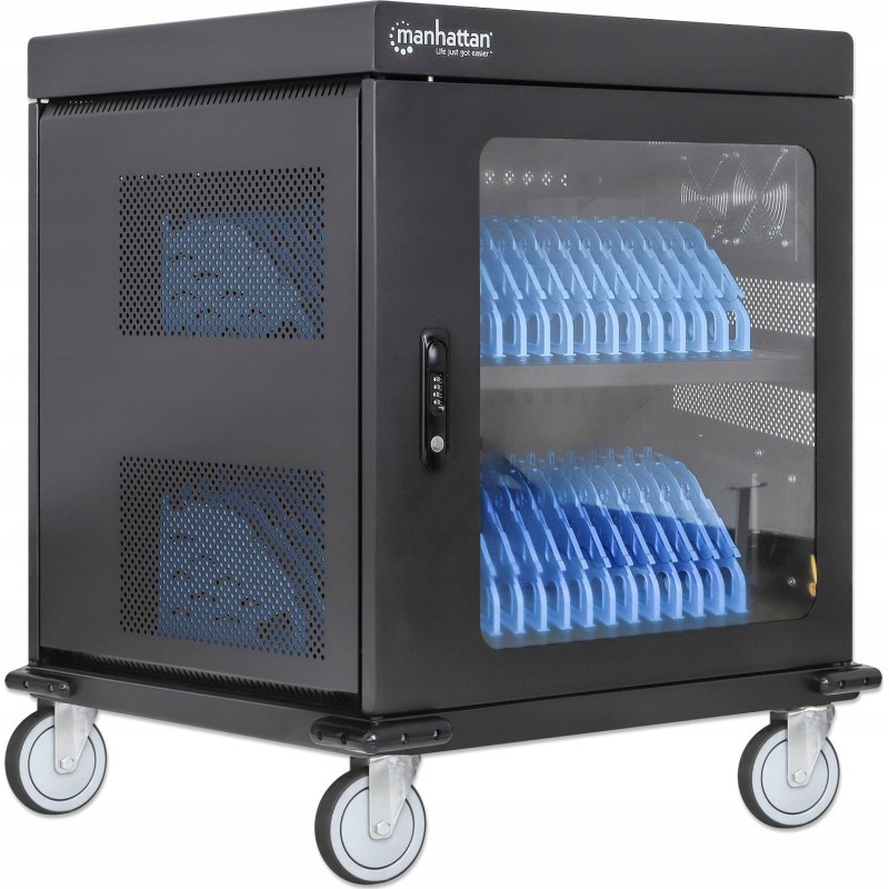 Manhattan Wózek 32-Portowa Szafa do Ładowania Laptopów, Tabletów, 32 Gniazda AC, 32 Przegrody na Urządzenia do 15.6”