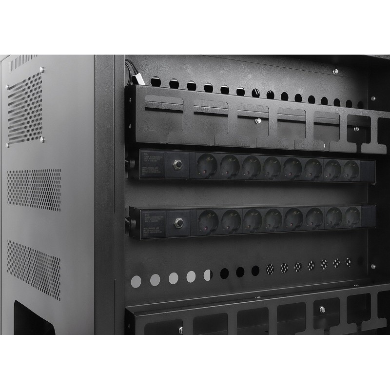 - 32 zintegrowane gniazda standardu EU CEE 7/3 (Schuko) w tylnej części stacji