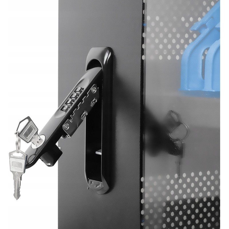 - Trzypunktowy zamek w drzwiach frontowych i tylnych, zamykana na dwa dołączone klucze lub cztero-cyfrową kombinację