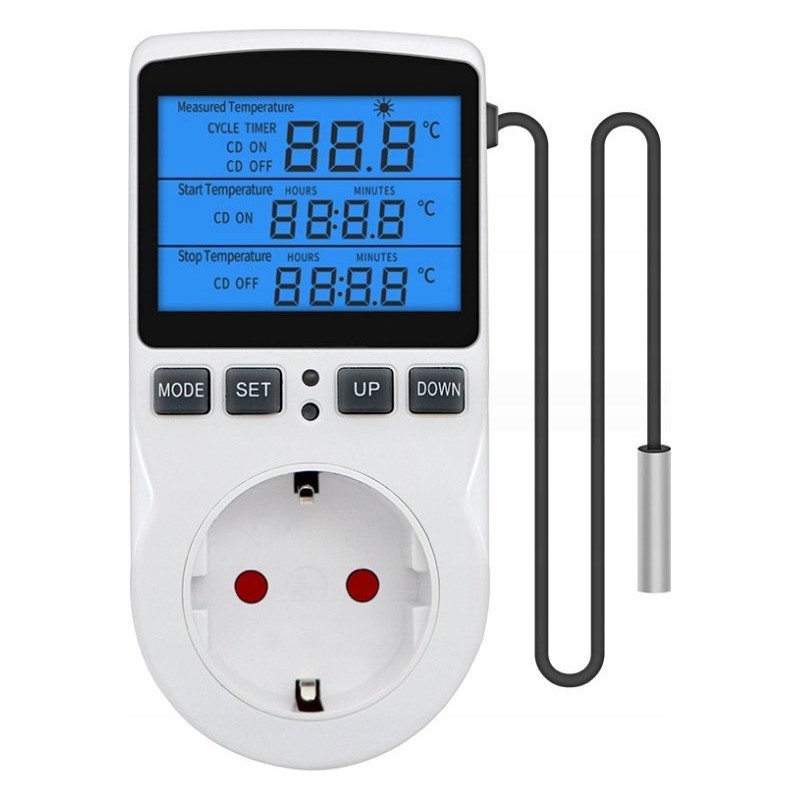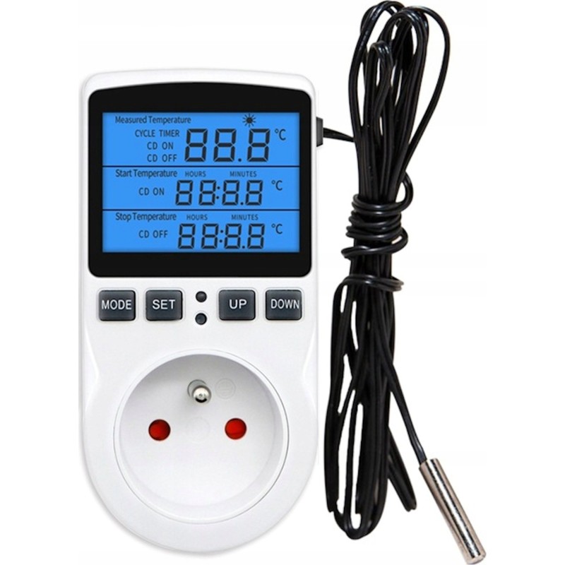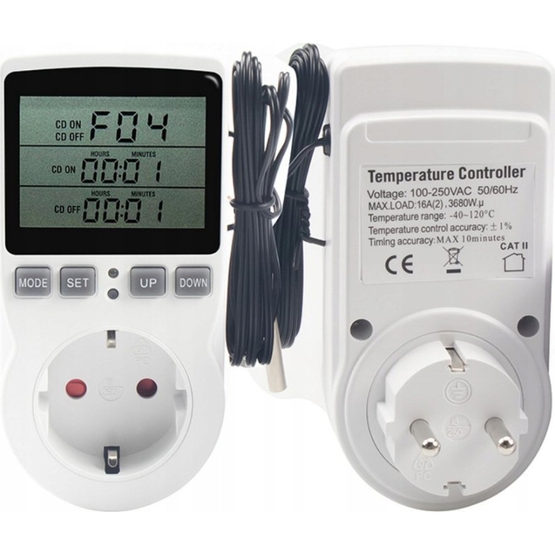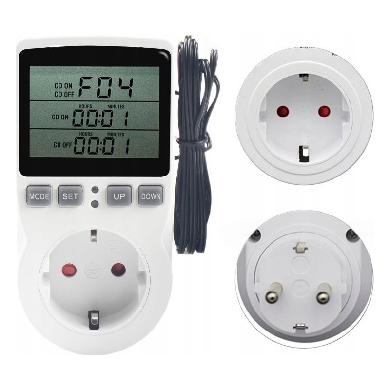 ⚙️ Wielofunkcyjny termostat - cyfrowy regulator temperatury gniazdko z przełącznikiem czasowym, sonda czujnika ogrzewanie chłodzenie 16A 230V 110V