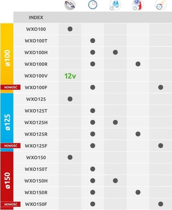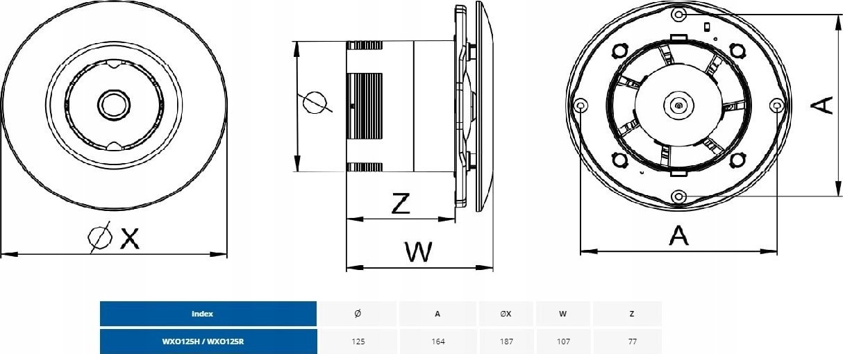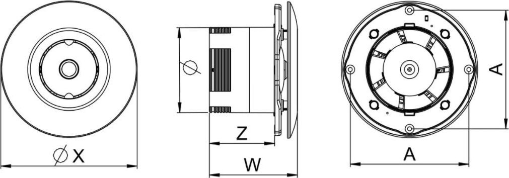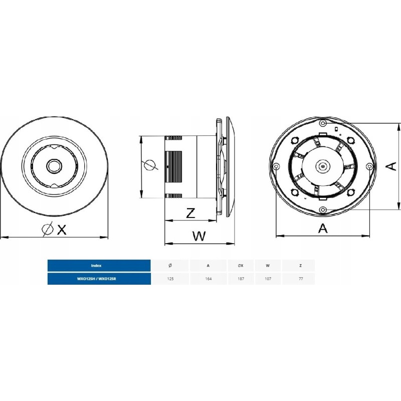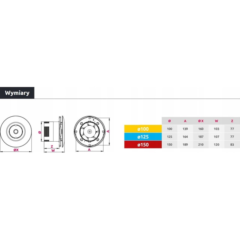 AWENTA Wentylator łazienkowy Awenta WXO125H Orbit fi125mm 160m3/h 16W 230V z czujnikiem wilgotności oraz wyłacznikiem czasowym b