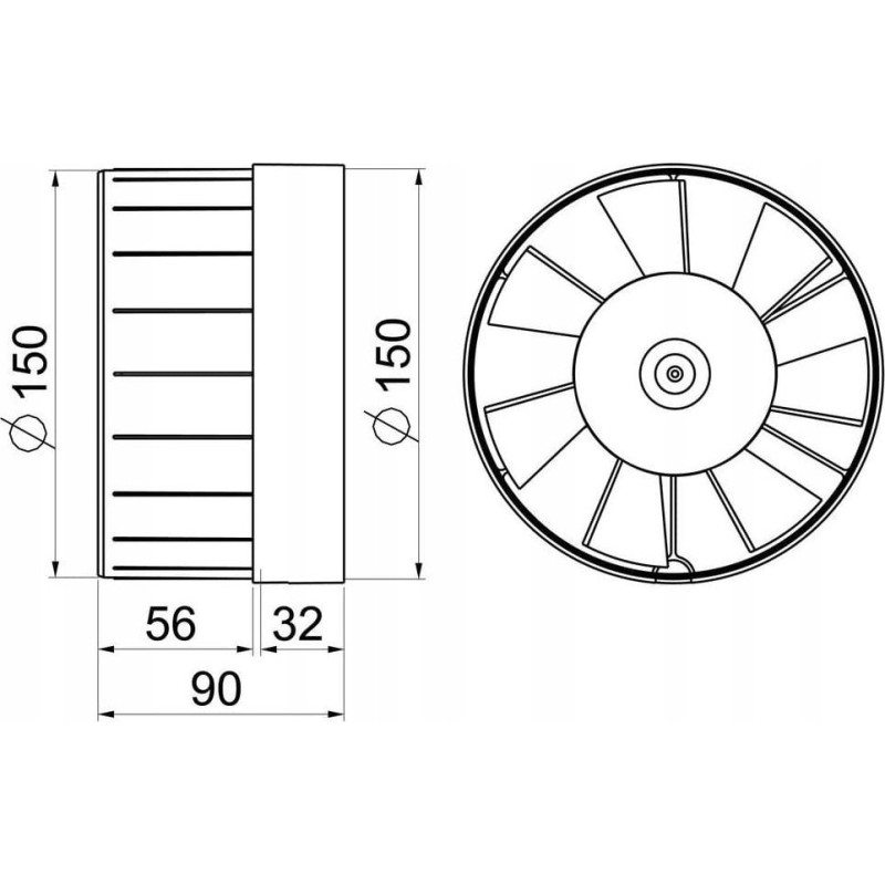 - Średnica wlotu świeżego powietrza (w mm) : 150