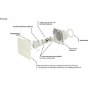 - Króciec wylotowy pozwala wmontować wentylator w ciąg wentylacyjny lub przyłączyć do kanału wentylacyjnego o średnicy Ø100 mm