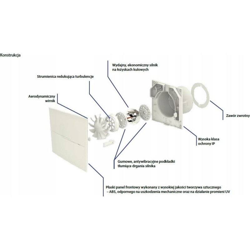 - Innowacyjne wentylatory wywiewne, w nowoczesnej stylistyce, zapewniające nowy poziom komfortu, przeznaczone do wentylacji pomieszczeń mieszkalnych (łazienek, kuchni, węzłów sanitarnych itp.).