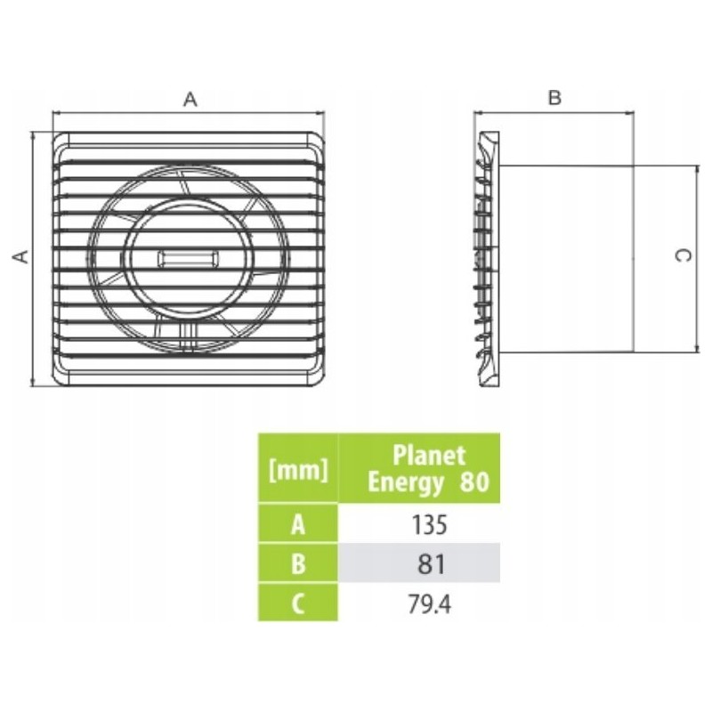 airRoxy WENTYLATOR ÅAZIENKOWY ENERGY PLANET 80 TS,WYÅÄCZNIK CZASOWY
