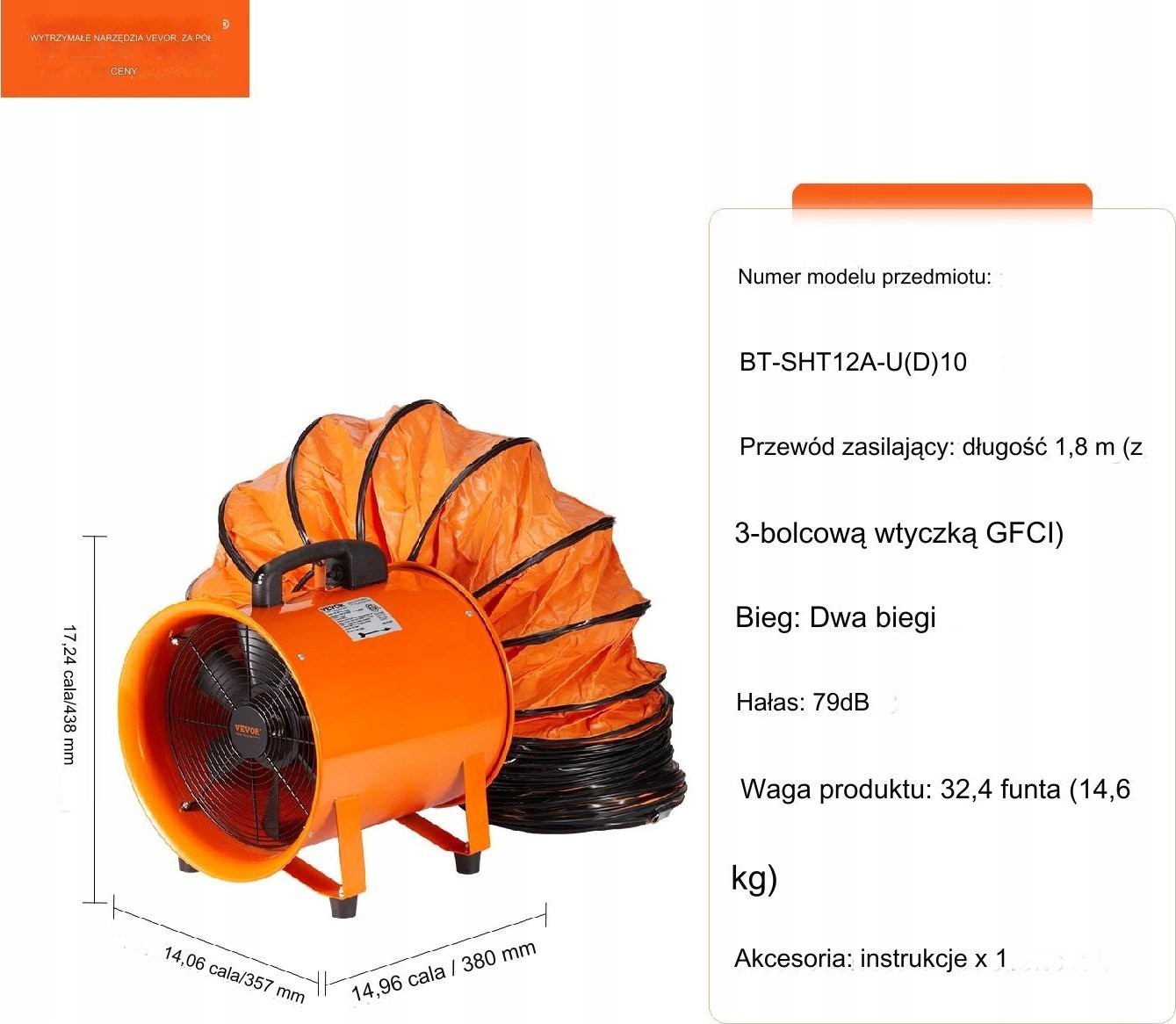 Kategoria Wentylatory ścienne i kanałowe Marka Vevor