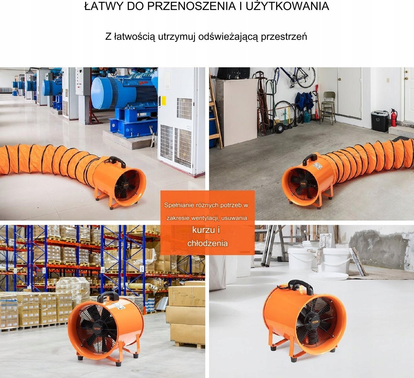 Przenośny Przemysłowy Wentylator Wyciągowy 304 mm Wąż 10 m